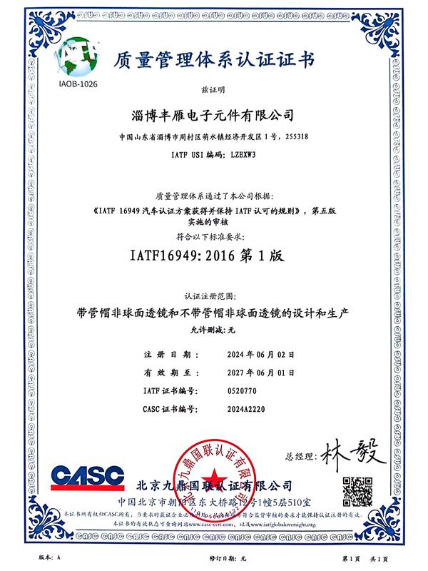 淄博豐雁電子元件有限公司,是一家集研發(fā)、生產(chǎn)、銷(xiāo)售為一體的透鏡管帽、晶體諧振器、晶體濾波器的高新技術(shù)企業(yè)。成立于1992年,坐落于山東省淄博市周村區(qū),注冊(cè)資金1000萬(wàn)元,擁有職工150余人,公司占地35000平方米,其中擁有5000平方的超凈化廠(chǎng)房,并配備了千級(jí)凈化工作臺(tái),確保環(huán)境的凈化度。公司下設(shè)光電事業(yè)部,濾波器事業(yè)部,晶體事業(yè)部等多個(gè)事業(yè)部。專(zhuān)注為光通訊、激光器領(lǐng)域以及各種電子應(yīng)用領(lǐng)域進(jìn)行電子元件配套。公司于1999年通過(guò)了ISO9000質(zhì)量體系認(rèn)證,公司提供的所有產(chǎn)品符合歐盟的R0HS和REACH標(biāo)準(zhǔn)。公司被認(rèn)定為淄博市“專(zhuān)精特新”企業(yè)、“淄博市企業(yè)技術(shù)中心”、省級(jí)“專(zhuān)精特新”企業(yè)、“山東省制造業(yè)單項(xiàng)冠軍”。公司擁有持續(xù)創(chuàng)新的研發(fā)團(tuán)隊(duì),有常年的外聘技術(shù)專(zhuān)家長(zhǎng)期指導(dǎo),并且與國(guó)內(nèi)多所大學(xué)和光電研究所保持長(zhǎng)期合作關(guān)系,確保了產(chǎn)品和技術(shù)的先進(jìn)性,能持續(xù)為客戶(hù)提供高質(zhì)量的產(chǎn)品和更好的全方位服務(wù)。
